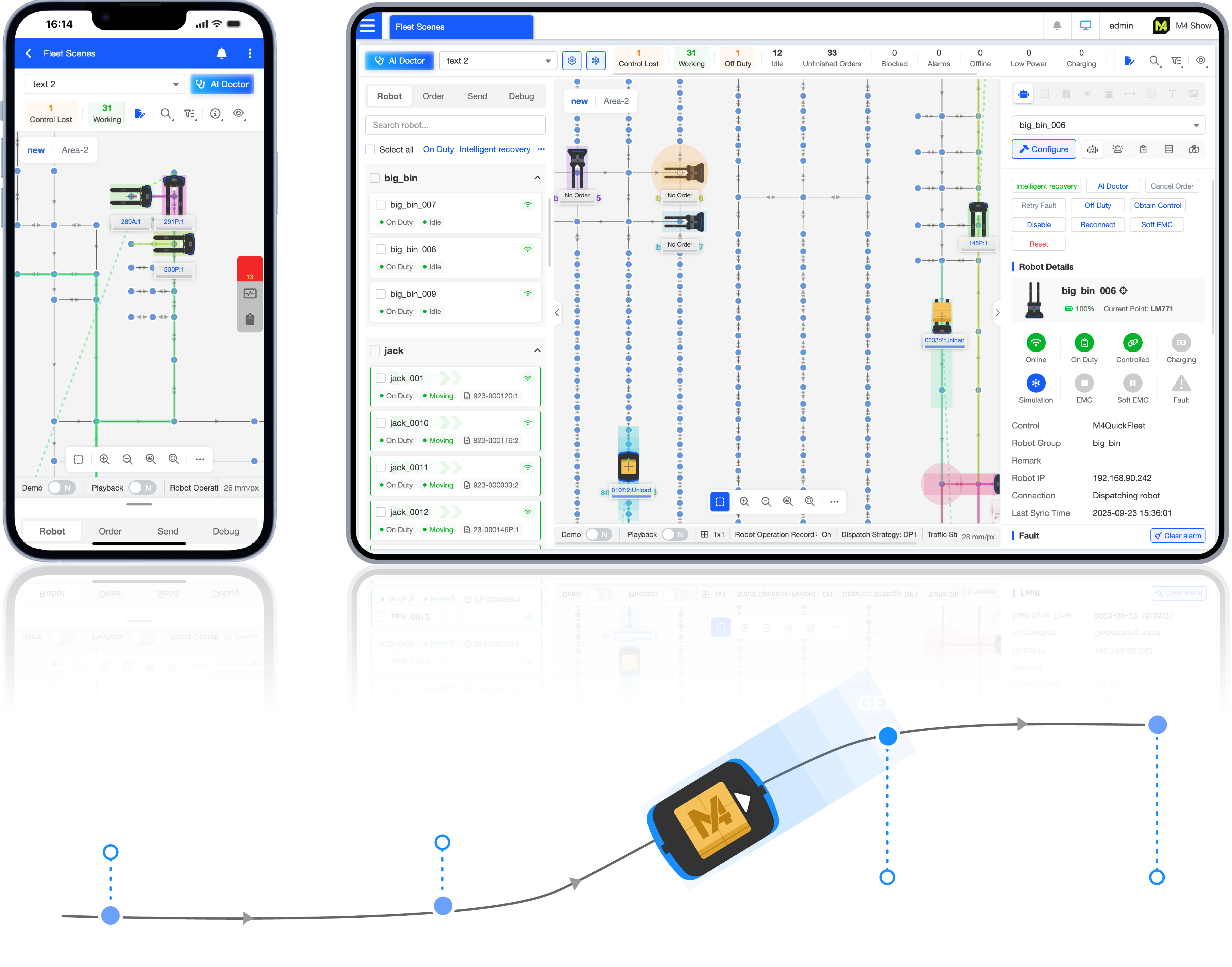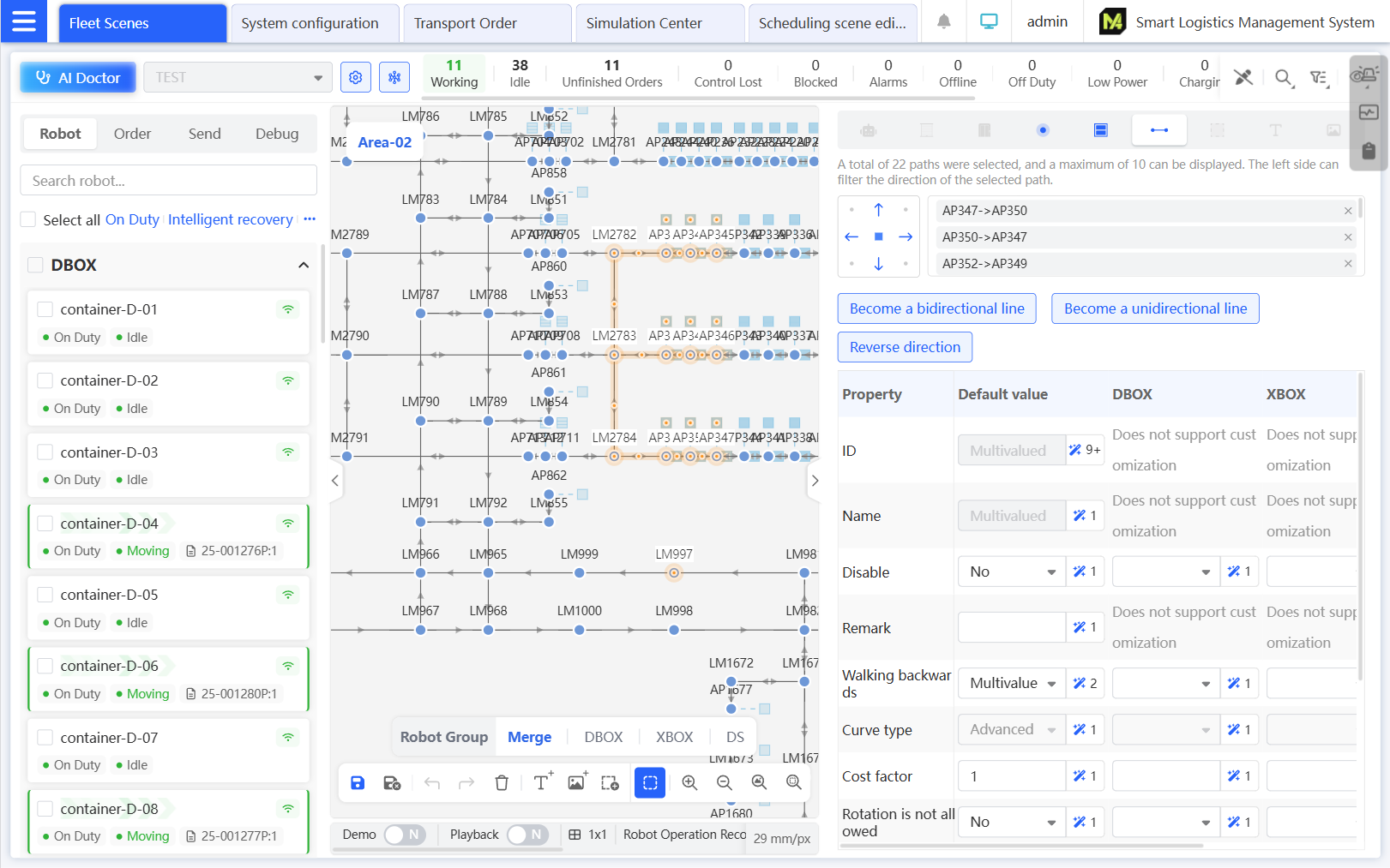 Supports batch editing of robots and maps, quick route disabling, and other quick operations, greatly improving efficiency. It supports group-based customization (e.g., point coordinates) for multi-robot consistency.