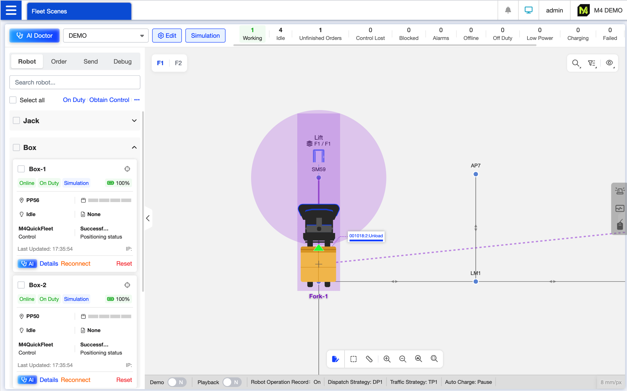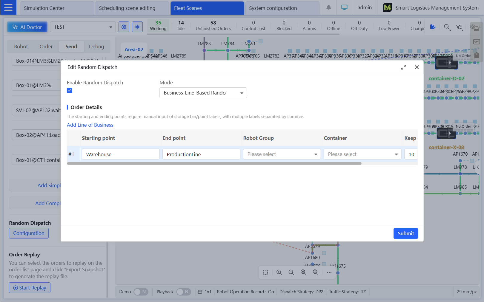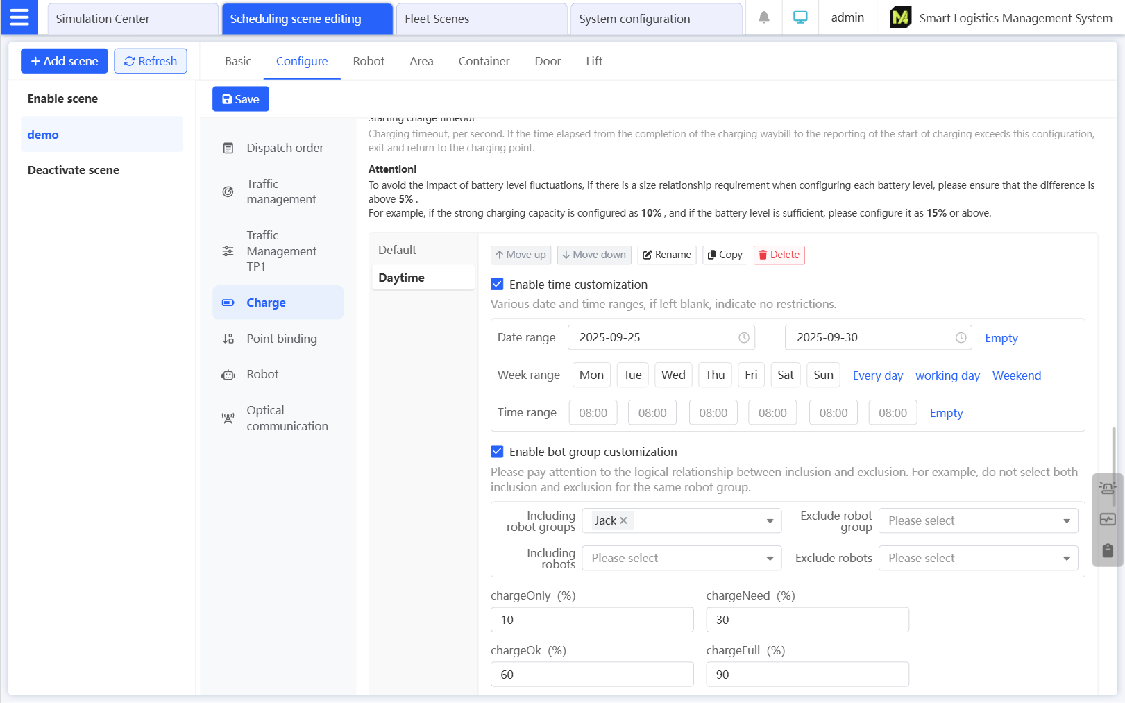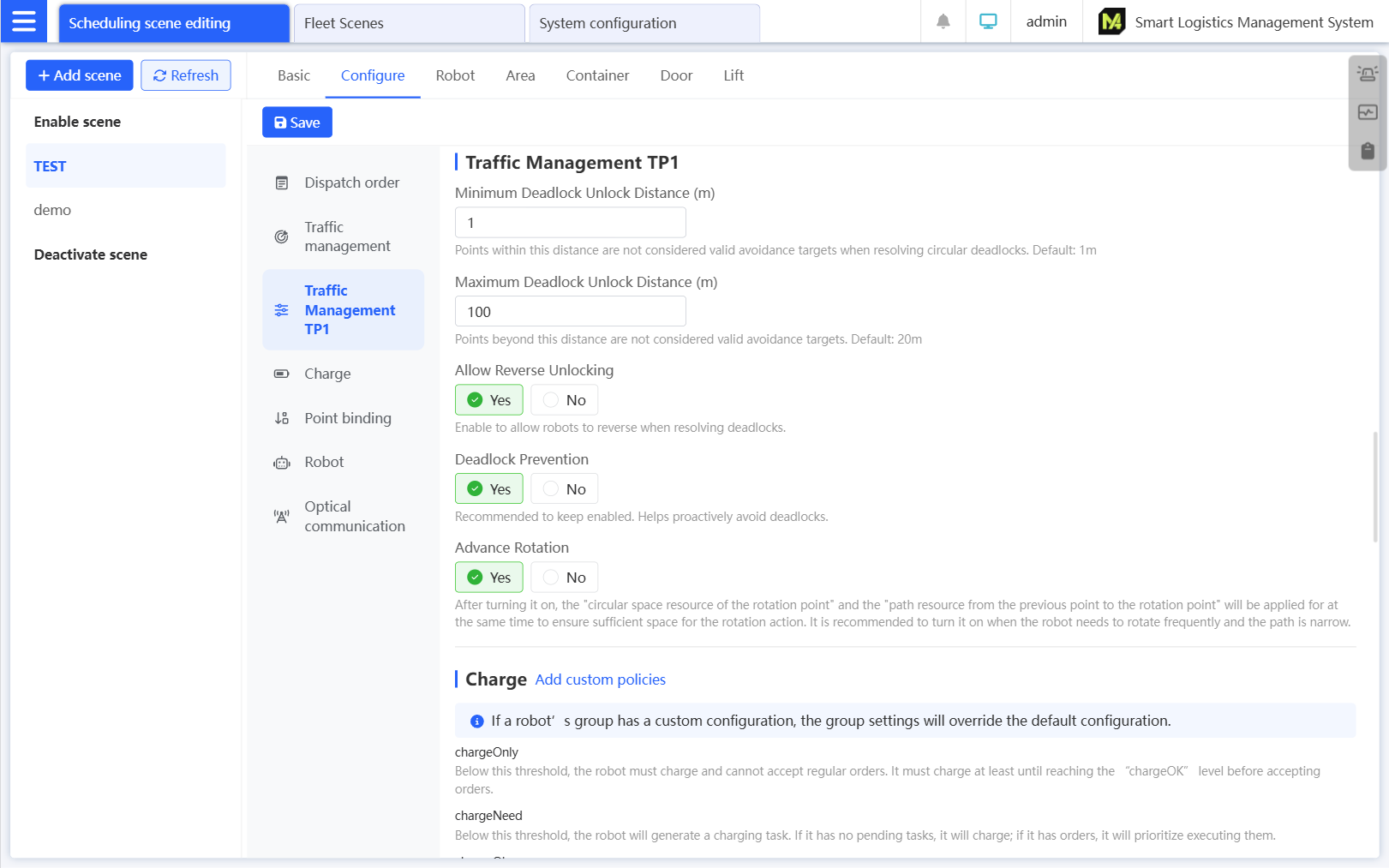 Supports the customization of dispatch strategies (e.g., dispatch sequence), parking strategies, charging strategies, storage management, and alarm notifications to adapt to special business scenarios, such as different charging strategies for day and night shifts.