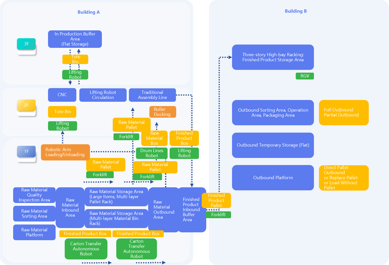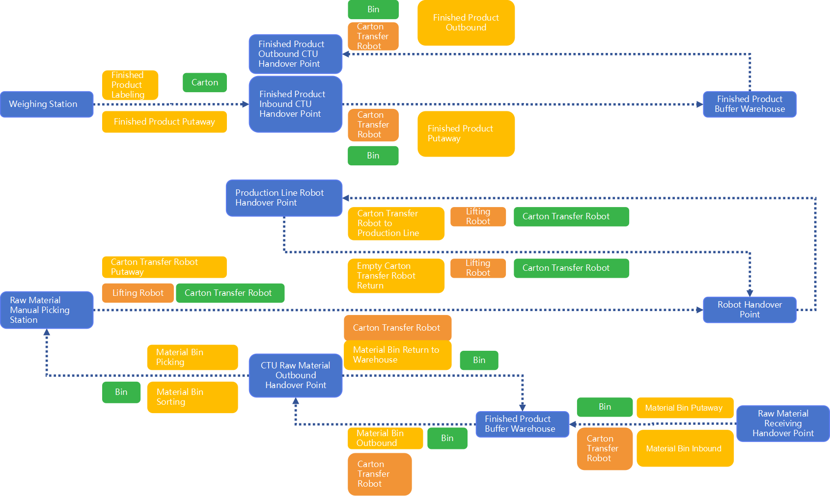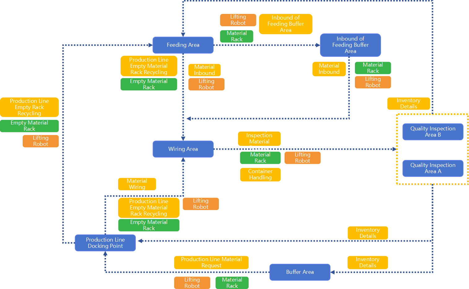 Robot dispatching can only achieve relatively standard functions, such as robot control, order dispatch, path planning, traffic control, and management of key devices like doors and elevators. However, actual business requirements are often non-standard, especially in industrial scenarios where each site's logistics needs are highly differentiated. M4 Falcon Task extends system capabilities through Python scripting and integrates with M4 QuickFleet, enabling visual orchestration of business processes to realize various non-standard requirements. For example, interacting with PLCs such as roller lines before picking up goods, notifying a third-party system after unloading, choosing different destinations based on device availability, or customizing complex storage bin selection logic according to cargo types.