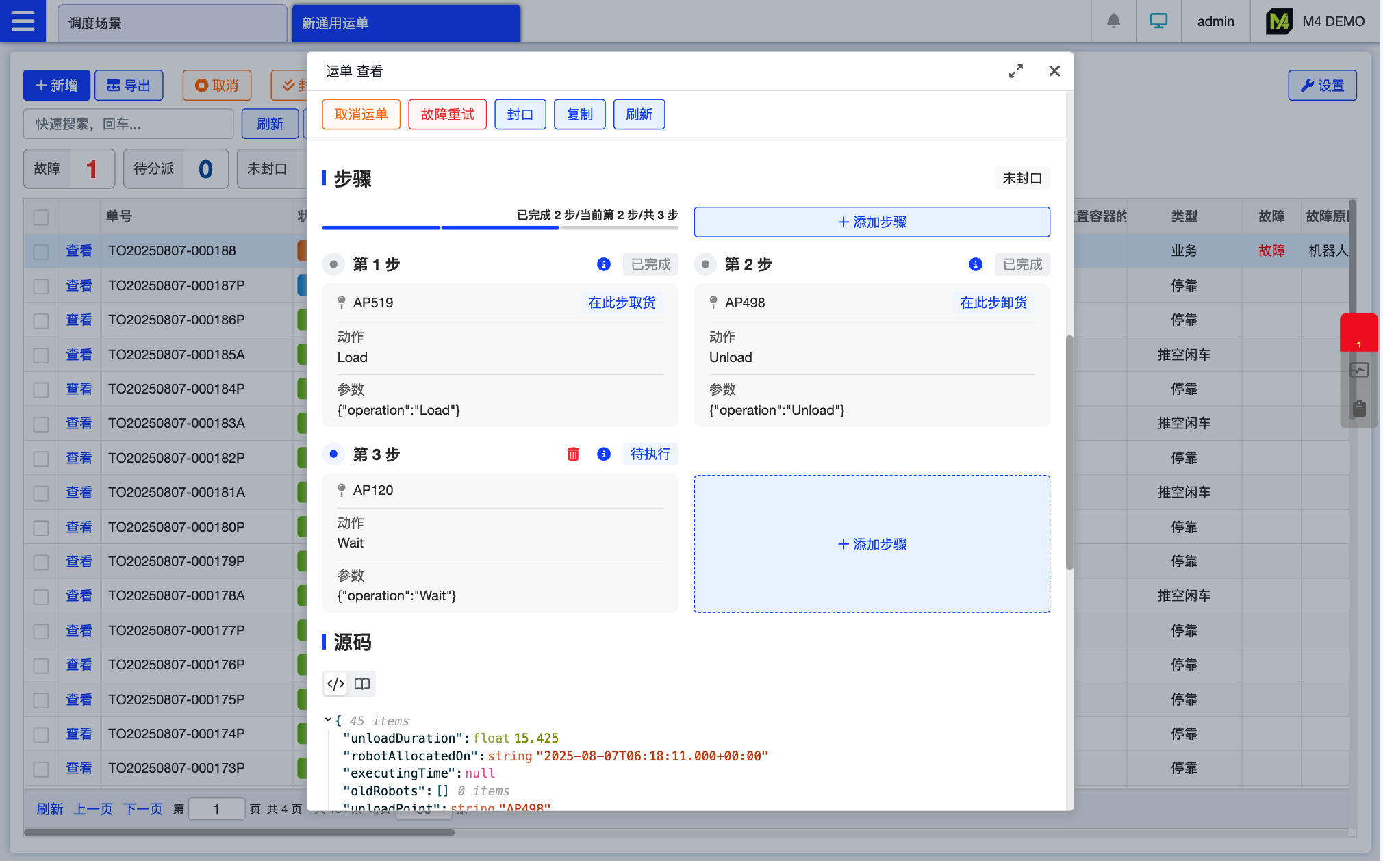 支持动态派单、抢单(如机器人把更近的单抢走)、运单的重分派。支持灵活的动态拼单,支持边下边拼、取放混合,拼单速度快。运单支持边执行边修改(如优先级、目的地)。能抗住每分钟 1000+ 单、每天 10000+ 单运量。
