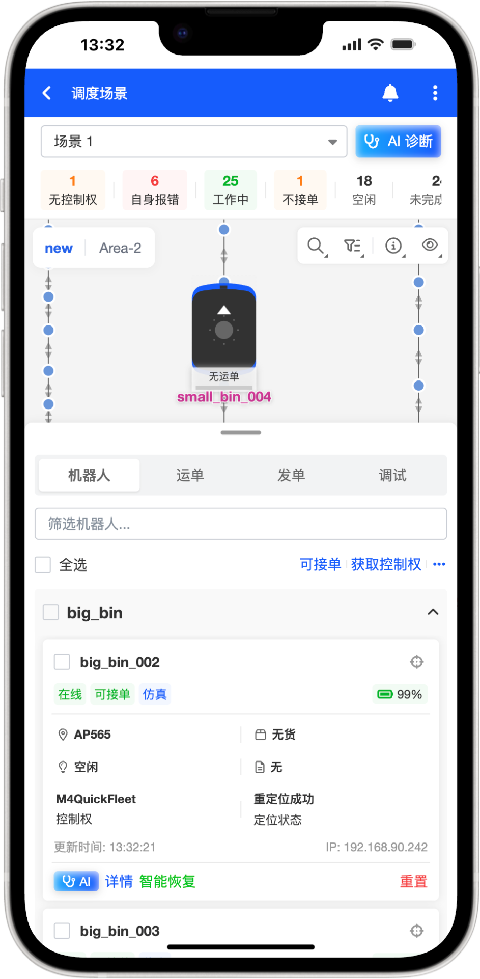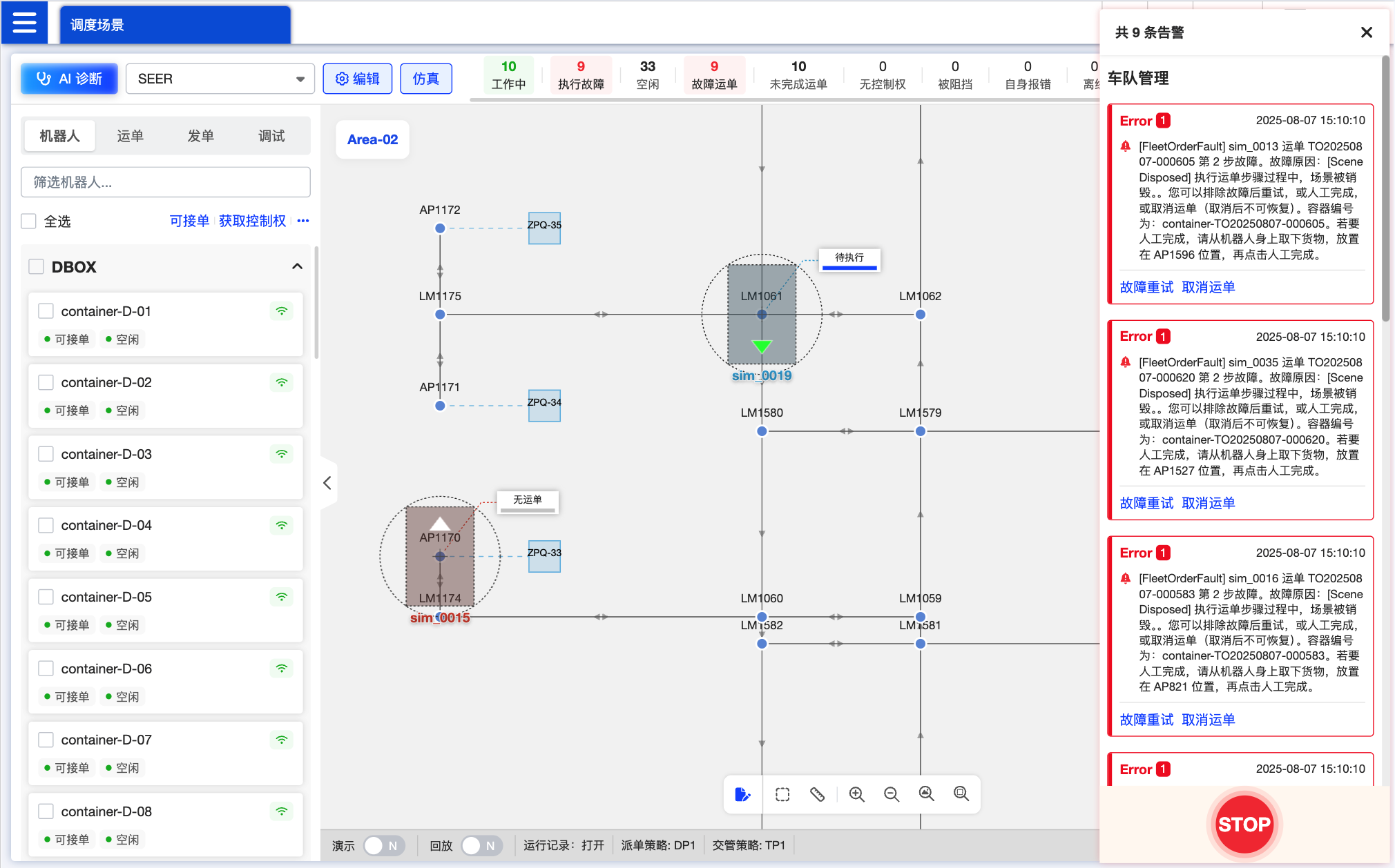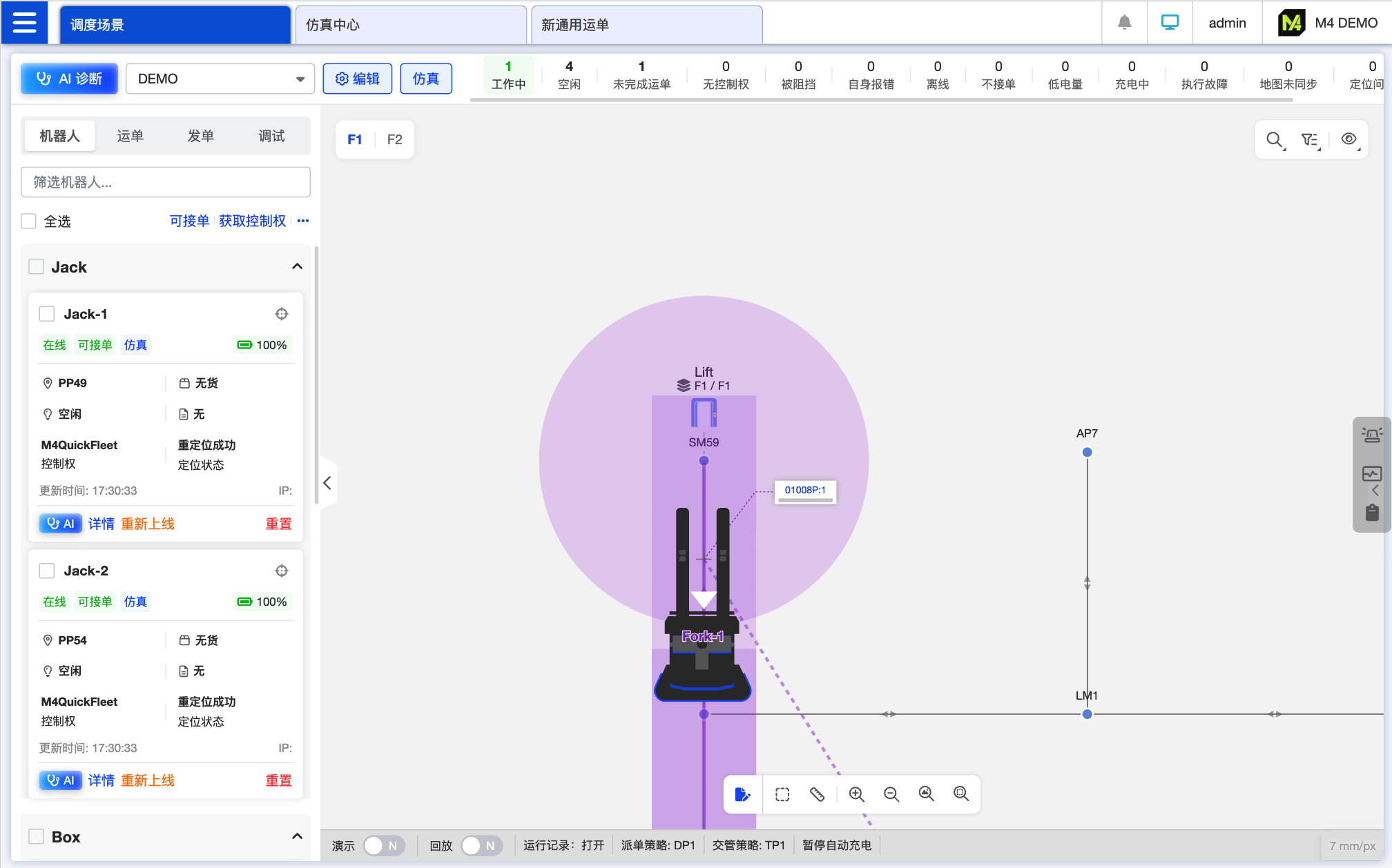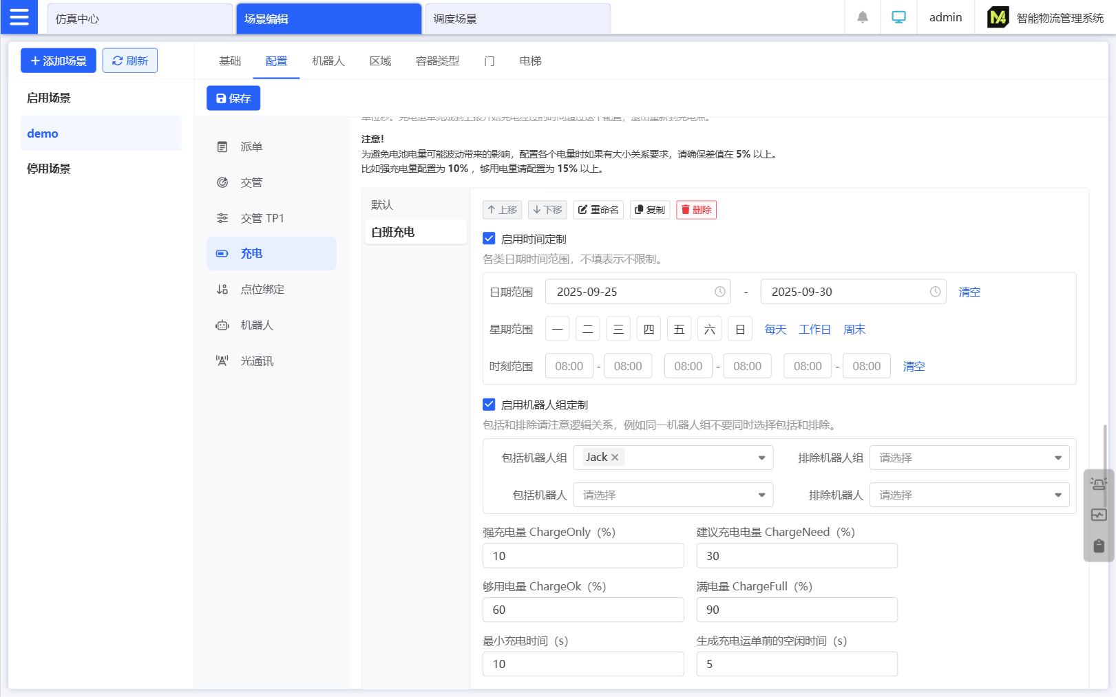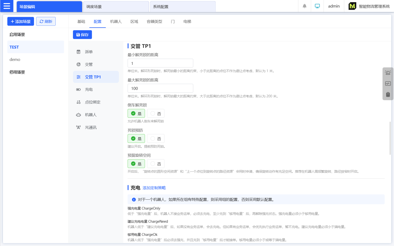 支持对派单策略(如派单顺序)、停靠策略、充电策略、库位管理、告警推送进行定制。以适应极特殊的业务场景。如白班夜班不同的充电方式。